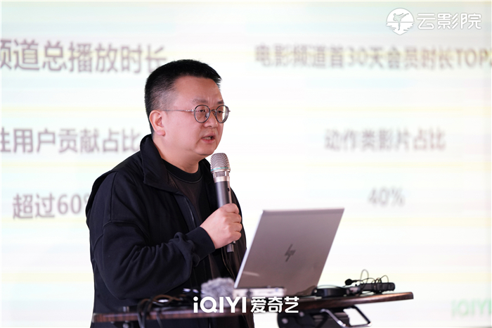 談及推出“動作高手季”電影廠牌,楊海濤表示這是基于實際的平臺用戶消費洞察。從用戶畫像來看,男性用戶為愛奇藝電影業(yè)務(wù)貢獻(xiàn)的播放時長超過60%,屬于電影消費的主流用戶群,且對動作影片具有一定偏好。從會員播放時長排名來看,上線30天影片會員播放時長排名前20的電影中,動作類型影片占比達(dá)到40%。從2023年云影院影片用戶付費訂購表現(xiàn)來看,動作類型影片的訂購數(shù)占到所有影片的91%。