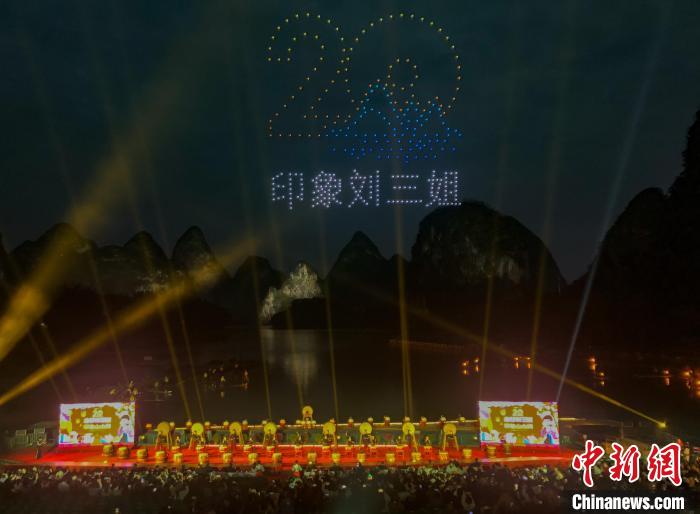 中新網(wǎng)桂林3月21日電(周利朔 蔣豐慧)3月20日晚,廣西桂林山水實(shí)景演出《印象·劉三姐》歡慶公演20周年,總導(dǎo)演王潮歌等藝術(shù)家與政商文旅界人士齊聚慶典現(xiàn)場,與中外游客共襄盛舉。