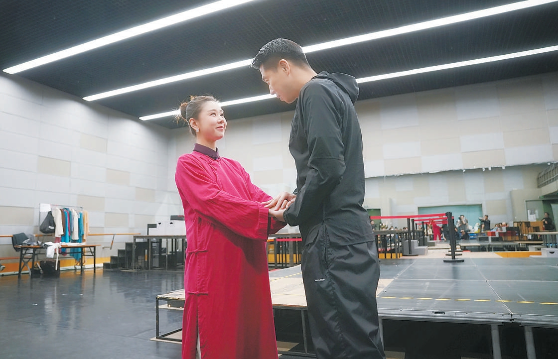 層疊的階梯、平臺把排練廳分割出高低錯落的空間,演員們穿行其間,走位自然帶上了一種落差感——這如同對主角鄧世昌心境的暗喻。“如果說《林則徐》講述的是幾位能左右國家命運的大人物的斗爭,那么《鄧世昌》就像一個人的戰(zhàn)爭?!眻?zhí)導兩部作品的導演王筱頔說。