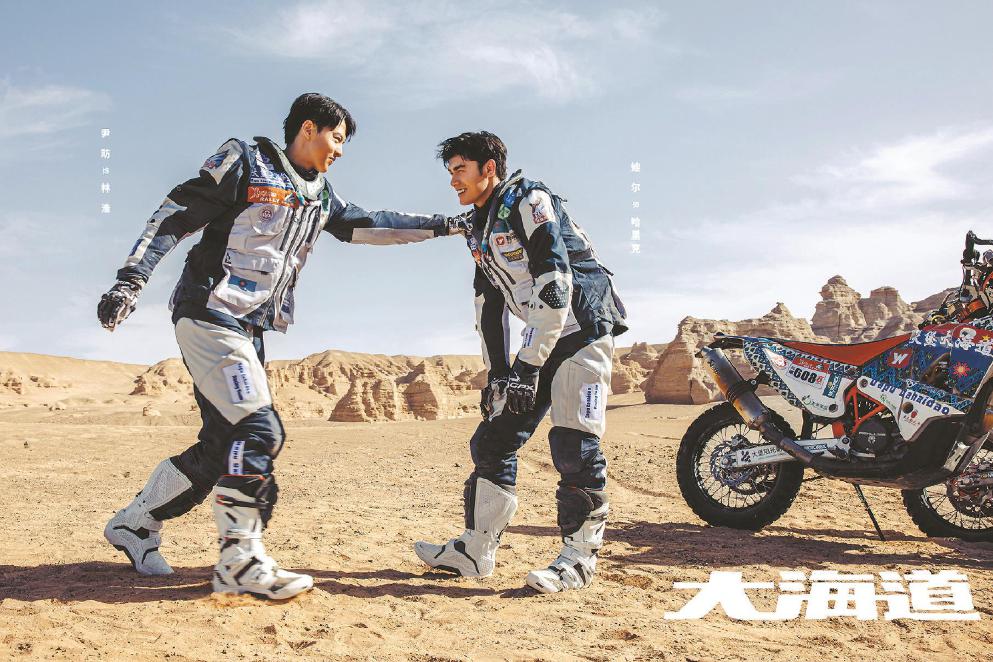 依據(jù)唐代典籍《西州圖經(jīng)》之記載:“大海道……常流沙,人行迷誤,有泉井,咸苦,無草”,古人在廣闊的大海道經(jīng)歷了艱難環(huán)境的試煉,憑借蓬勃的生命力量開辟中國(guó)陸上絲綢之路;劇中,哈里克、林浩駕駛摩托車馳騁于荒漠,進(jìn)行極限體驗(yàn)與挑戰(zhàn),延續(xù)了絲路上的生命力量,在兩千年后繼續(xù)書寫生命故事。
