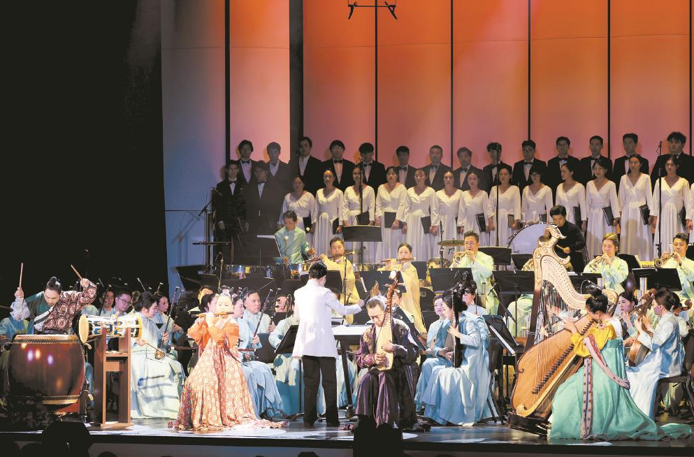 作曲家孔志軒分享了演出細(xì)節(jié),此次他優(yōu)化了第五與第六篇章?!暗谖迤隆讹L(fēng)骨錚鳴》擴(kuò)充原有結(jié)構(gòu),層層遞進(jìn)間讓風(fēng)骨內(nèi)涵更立體豐滿;第六篇章《星河共潮》則精簡結(jié)構(gòu),凝練打磨各部分音樂形象,核心是凸顯中華民族屹立不倒的民族氣節(jié)?!?/p>