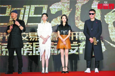 孫紅雷(右一)、萬茜、徐兵(左一)等人為電視劇《新世界》站臺(tái)。