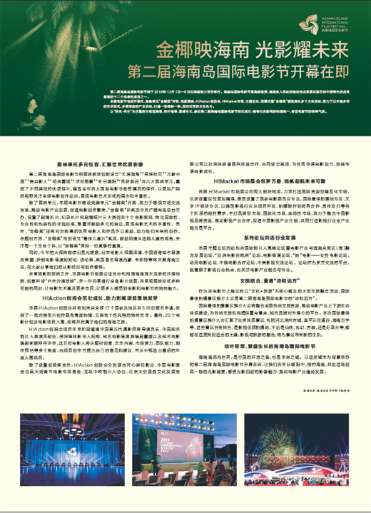 海南島面向世界,是中國的開放之島,也是未來之城。以這座城市為背景舉辦的第二屆海南島國際電影節(jié)開幕在即,讓我們在冬日暖陽中,相約海南,共赴這場別具一格的光影盛宴,感受光影四射的影像魅力,推動(dòng)電影產(chǎn)業(yè)蓬勃發(fā)展。