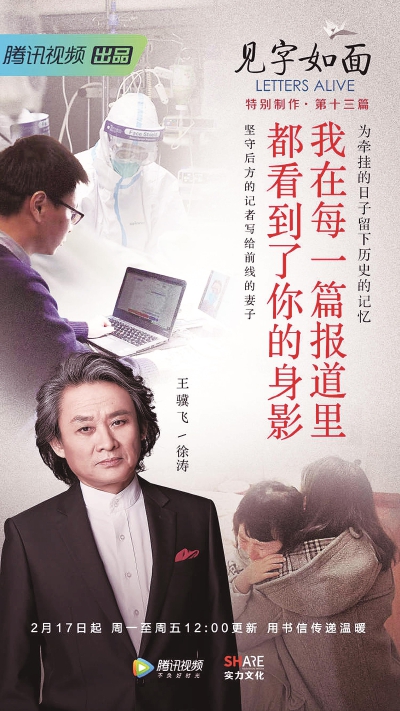 妻子寫給丈夫,孩子寫給母親,顧客寫給外賣小哥,醫(yī)生寫給小賣鋪店主……自2月17日在騰訊視頻上線以來,以“云錄制”方式打造的《見字如面》特別制作已經(jīng)刊播了十來封疫情背景下的書信。