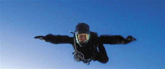 HALO是一種危險性極高的跳傘方式:在25000英尺的高空跳傘,在2000英尺以下的低空開傘?!兜姓?》拍攝中,為了準確地跳到攝像機跟前,阿湯哥跳了106次才成功,每次都要以320km的時速下降。