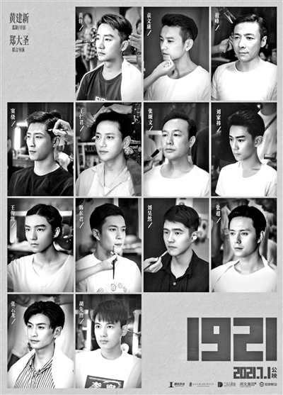 10月19日,由黃建新監(jiān)制兼導(dǎo)演,鄭大圣聯(lián)合導(dǎo)演的電影《1921》宣布將于2021年7月1日全國(guó)公映,并首次曝光了主演陣容——由黃軒、袁文康、祖峰、竇驍、王仁君、張頌文、劉家祎、王俊凱、韓東君、劉昊然等飾演中共一大代表。據(jù)悉,1921年,一大參會(huì)代表的平均年齡只有28歲,正是一群青春朝氣的熱血青年。為了更貼近真實(shí)人物,演員除了要年齡符合,更要“形神兼?zhèn)洹?。黃建新導(dǎo)演透露,為了選出樣貌和靜態(tài)上最像角色的演員,籌備時(shí)在辦公室兩面墻上貼滿了照片。