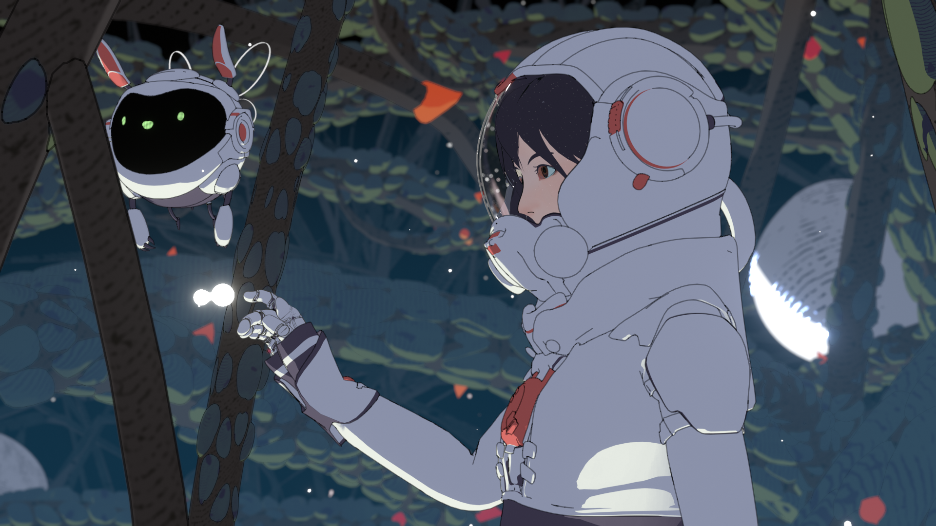 如何在宇宙的浪漫遐想中,探索人與自然神秘又深刻的聯(lián)系?廣美繪畫藝術(shù)學(xué)院的畢業(yè)生尹嘉琳的動畫作品《循星》提供了一個瑰麗又奇幻的視角。故事在一個星系中的兩顆星球之間展開,一名叫“卡西尼”的旅行者和她的機器人“惠更斯”踏上了一段不同尋常的太空漫游之旅,恢宏宇宙中的景象和遺跡,充滿未知的冒險元素,在這趟旅程中漸次展開。