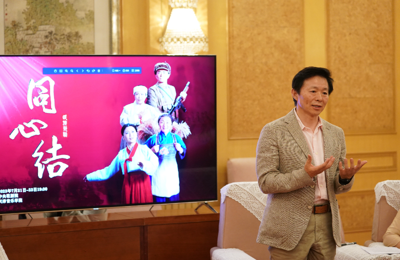 《同心結(jié)》是一部紅色題材的經(jīng)典歌劇,1981年由田川、任萍擔任編劇,黃慶和、王云之、劉易民作曲,原中國人民解放軍總政治部歌劇團創(chuàng)作首演。2023年是抗美援朝戰(zhàn)爭勝利70周年,天津音樂學院進行了創(chuàng)作復排。此番上演的《同心結(jié)》是音樂會版歌劇,樂隊被設置在舞臺之上,80人的青年交響樂團和110人的青年合唱團,全部由天津音樂學院師生班底組成。