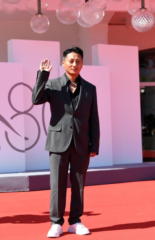 9月6日,在意大利威尼斯,電影《雪豹》執(zhí)行導(dǎo)演久美成列亮相首映式紅毯。新華社記者 金馬夢妮 攝