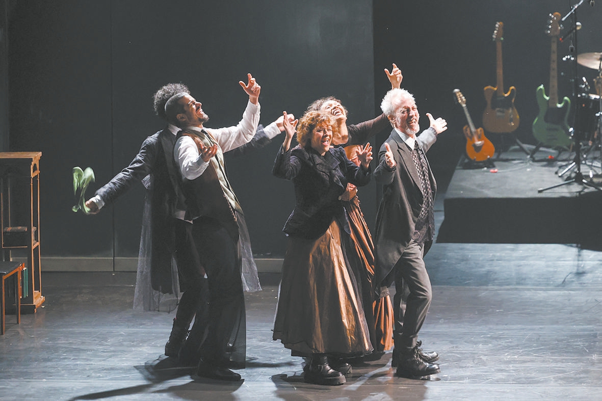 不過觀眾欣賞馬瑞爾斯的創(chuàng)新改編時,卻是十分享受?;蛟S因為馬瑞爾斯將小說中極具視聽感的部分,通過幕景、樂器、復(fù)古道具以及演員精湛的表演完美再創(chuàng),讓文學與戲劇碰撞出美妙的火花,并將小說中兼有含蓄與諷刺的筆觸,在舞臺上還原。