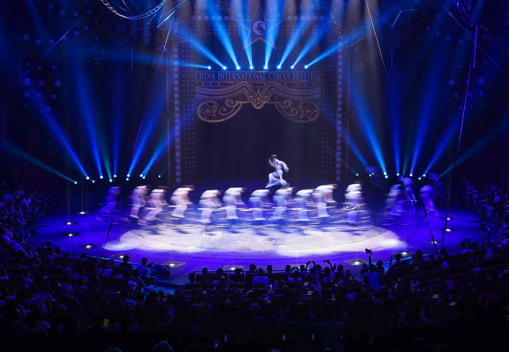 演員在第七屆中國國際馬戲節(jié)參演節(jié)目A場展演后集體謝幕(11月5日攝)。新華社記者 劉大偉 攝