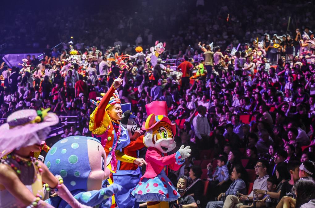 第七屆中國國際馬戲節(jié)在珠海開幕,開幕式上演員與觀眾互動(dòng)游戲(11月4日攝)。新華社記者 劉大偉 攝