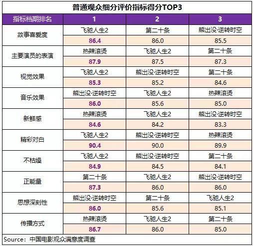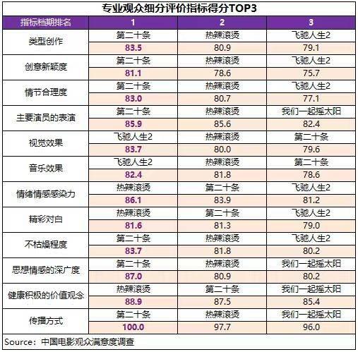 從細(xì)分維度評價(jià)上看,檔期優(yōu)質(zhì)影片眾多,觀眾各有所“愛”。在普通觀眾評價(jià)體系中,《飛馳人生2》的故事喜愛度、視覺效果、精彩對白和不枯燥居首位,《熱辣滾燙》主要演員的表演、新鮮感和傳播方式居第一位,《第二十條》的正能量、《熊出沒?逆轉(zhuǎn)時(shí)空》的音樂效果、思想的深刻性得分居第一位。 在專業(yè)觀眾評價(jià)體系中,《第二十條》的類型創(chuàng)作、創(chuàng)意新穎度、情節(jié)合理度、主要演員的表演、不枯燥、思想情感的深廣度和傳播方式7項(xiàng)指標(biāo)得分均居檔期首位,《熱辣滾燙》的情緒情感感染力、精彩對白和健康積極的價(jià)值觀念為第一名,《飛馳人生2》的視覺效果、音樂效果獲得檔期最高評分。另外,《我們一起搖太陽》的主要演員的表演、思想情感的深廣度、健康積極的價(jià)值觀念和傳播方式得分也進(jìn)入檔期前三位。