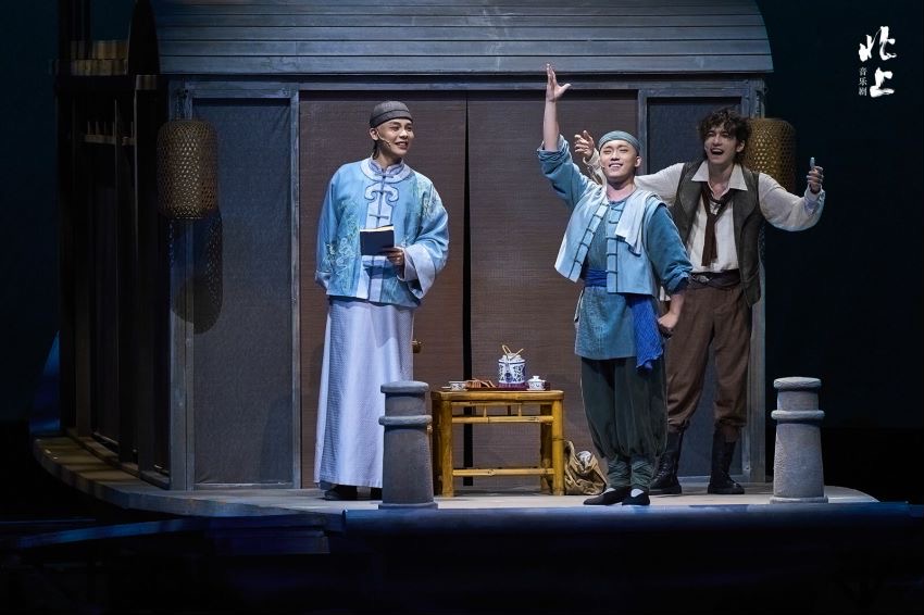 作為北京文化藝術(shù)基金2023年度資助項(xiàng)目、“大戲看北京”展演劇目,音樂劇《北上》由中共北京市委宣傳部、北京市文化和旅游局指導(dǎo),北京廣播電視臺出品,講述了20世紀(jì)初漕運(yùn)總督府翻譯謝平遙與來華考察的意大利人“小波羅”等一同踏上沿京杭大運(yùn)河北上的旅程,歷經(jīng)磨礪,終獲曙光,在亂世洪流中建立起深厚友誼。
