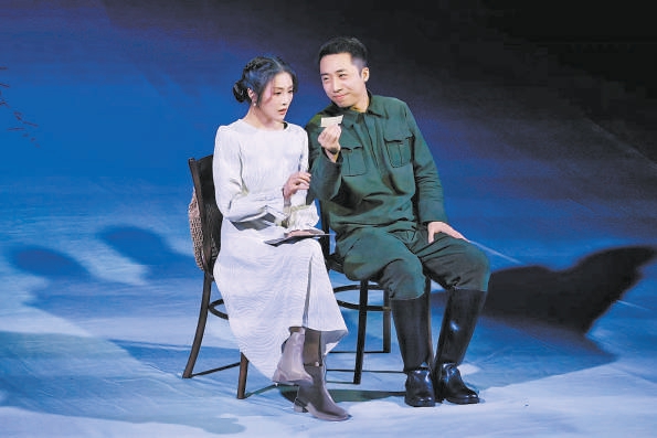 青年導(dǎo)演張彤向來(lái)擅長(zhǎng)細(xì)膩深沉的風(fēng)格,《華沙旋律》延續(xù)了這種基調(diào),以兩個(gè)年輕人的悲劇折射出對(duì)和平、和解等永恒命題的當(dāng)代探尋。張可盈、杜子俊飾演的格里婭、維泰克在舞臺(tái)上剖開愛情的甜蜜與現(xiàn)實(shí)的苦澀,每當(dāng)他們的愛意向前一步,盤桓在格里婭心頭的恐懼又將他們狠狠撕扯。