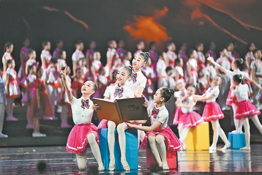 演出由中國宋慶齡基金會、中國福利會、國家大劇院共同主辦,北京市教育委員會、中國青少年宮協(xié)會、北京京劇院支持。圍繞“我和祖國一起成長”的主題,“如日之升·如月之恒”“美美與共·琴瑟和鳴”“翩翩少年·灼灼其華”“薪火相承·筑夢未來”4個篇章層層遞進(jìn),融匯合唱朗誦、戲曲舞蹈、器樂演奏、武術(shù)雜技、非遺文化展示等多種藝術(shù)形式。開場秀《少年強(qiáng)則中國強(qiáng)》薈萃中國大鼓、武術(shù)、舞龍、舞獅,朝氣蓬勃;舞蹈詩朗誦《離騷·少年志》把詩意融入舞蹈,綻放強(qiáng)烈的愛國主義光芒;雜技劇《如日凌風(fēng)》藝術(shù)化呈現(xiàn)“神舟飛天、蛟龍入海”的科學(xué)探索精神;戲劇《硝煙中的燭光》展現(xiàn)宋慶齡為爭取國際友好力量支持中國人民抗戰(zhàn)的場景,以及創(chuàng)辦戰(zhàn)時兒童保育院、用生命守護(hù)國家希望的感人故事……