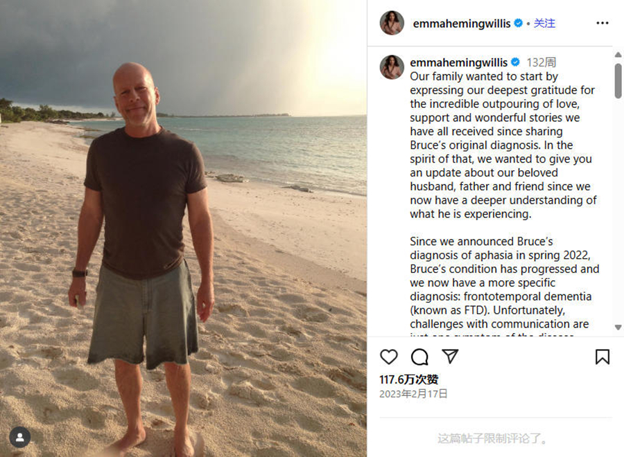 布魯斯·威利斯家人發(fā)布的聯(lián)合聲明。