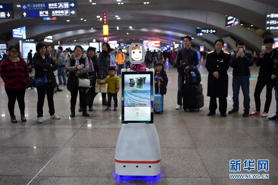 2月1日,旅客們?cè)趶V州南站與智能機(jī)器人“小璐”對(duì)話。當(dāng)日,一臺(tái)名叫“小璐”的智能機(jī)器人亮相廣州南站,吸引了大批旅客的圍觀,大家紛紛嘗試與“小璐”對(duì)話,向她咨詢列車(chē)時(shí)刻、購(gòu)票信息、天氣情況等問(wèn)題,“小璐”不僅可以用甜美的女聲一一作答,還可以在接收到語(yǔ)音指令后,為旅客“唱歌”和“跳舞”。據(jù)了解,使用智能機(jī)器人服務(wù)旅客是廣州南站在今年春運(yùn)中的新嘗試,如果試用效果良好,今后有望在車(chē)站中看到更多智能機(jī)器人的身影。新華社記者 梁旭 攝