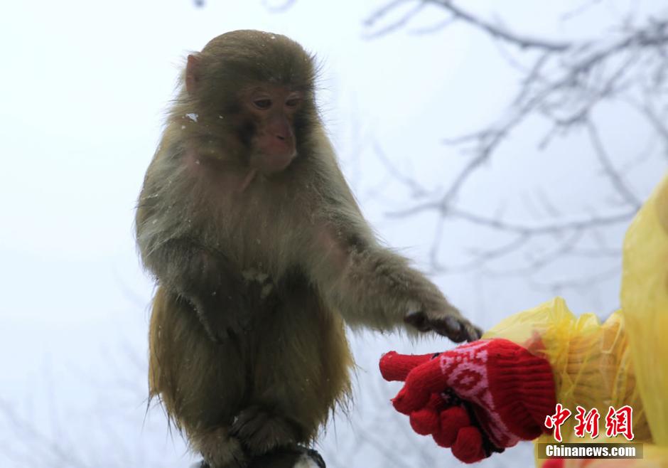 2月22日正值元宵佳節(jié),湖南張家界核心景區(qū)武陵源喜降春雪。在黃石寨景區(qū),成群的野生獼猴或在雪中追逐戲鬧,或在樹(shù)枝上攀爬跳躍,或蜷縮著身子賣(mài)萌,成為張家界武陵源的一道春季新景。吳勇兵 攝