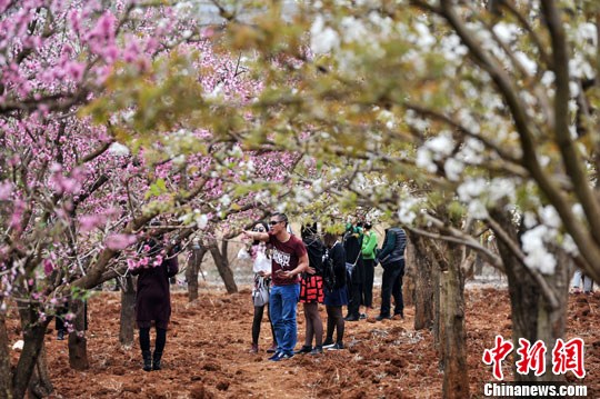 3月22日,昆明萬(wàn)溪沖村萬(wàn)畝梨花盛開(kāi),吸引了許多市民前來(lái)賞花拍照。中新社記者 任東 攝