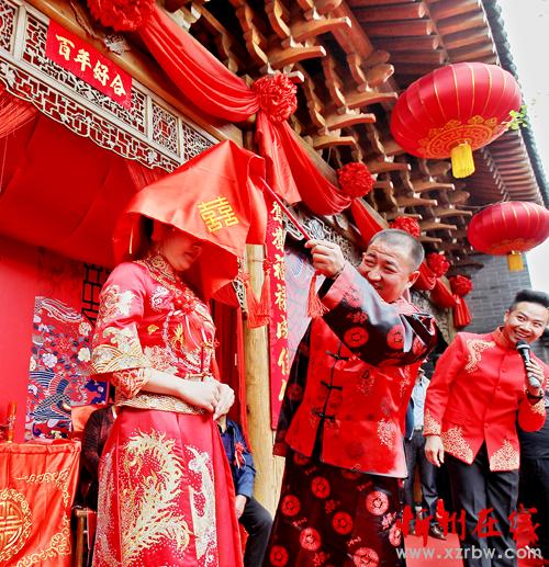 “現(xiàn)在越來越多的新人喜歡中國風婚禮?!丙悓毼幕瘋髅接邢薰净槎Y策劃人王麗江感嘆道。