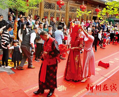 5月1日,不僅是國際勞動節(jié),很多新人也會選擇在這一天舉行婚禮。忻州市民潘先生和智女士就是其中的一對。這一天,他們在傳統(tǒng)中式婚禮儀式中邁入婚姻殿堂。古色古香的四合院,一排排大紅燈籠串著喜慶,一把把七彩陽傘溢著吉祥;紅彤彤的地毯鋪滿幸福,熱騰騰的油糕粘著美滿。一段紅絲綢,牽著新人的手,牽著一生一世的愛情,跨火盆馬鞍,拜過天地高堂,夫妻對拜,揭開紅蓋頭,點上紅喜燭,再喝一杯交杯酒……講究、喜慶的傳統(tǒng)中式婚禮環(huán)節(jié)讓兩位新人和到場賓客感受到了中國傳統(tǒng)文化的魅力。 傳統(tǒng)婚禮是中國文化精粹之一,婚禮習俗也源于中國幾千年的歷史文化積累,孝敬、祝福、吉祥更是成為中式婚禮上的主題,幾乎婚禮的每一項禮儀都滲透著中國人婚禮習俗的哲學思想。后來隨著時代發(fā)展,中式婚禮漸漸退出了人們的視線。很長一段時間無論在鄉(xiāng)村,還是城市,大家推崇的都是西式婚禮,新娘乘坐的工具也由原來的花轎換成汽車,婚車也從最初的普通小轎車到現(xiàn)在超長的凱迪拉克或賓利等高檔車。每當節(jié)假日,我們時常會見到十幾輛結(jié)婚用的小轎車,浩浩蕩蕩,魚貫而行地駛過,場景甚至比上世紀60年代的國賓車隊還威風、氣派?,F(xiàn)如今,越來越多的新人選擇中式婚禮,是傳統(tǒng)婚禮文化的一種回歸。
