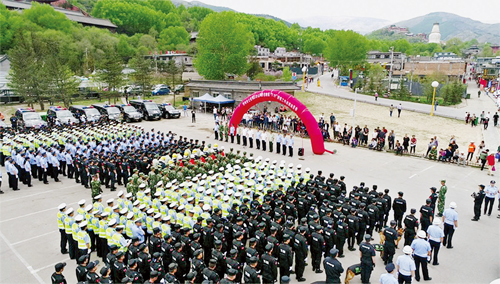 為了擦亮佛教圣地五臺山這個旅游窗口,打造形象五臺山,忻州市公安局部署從今年5月1日起至10月31日,在五臺山風(fēng)景區(qū)開展流動人口暨治安秩序大整治(即兩項整治)工作,從秩序安全、流動人口管理、治安、交通和消防等5大類33個層面對五臺山風(fēng)景區(qū)進(jìn)行集中整治。時值“兩項整治”進(jìn)入高潮之際,五臺山迎來了“5.19”中國旅游日,忻州市公安局黨委將此次“5.19”治安工作作為“兩項整治”的第一次大考,當(dāng)作首次檢驗(yàn)整治機(jī)制、設(shè)施、效果和隊伍的絕佳機(jī)會。為此,市公安局從市局、五臺山風(fēng)景區(qū)、五臺縣、繁峙縣、原平市、代縣等地和武警、消防、保安公司抽調(diào)精干警力和安保人員組成執(zhí)勤隊伍。18日下午,市公安局在五臺山景區(qū)舉行戰(zhàn)前動員會。動員指出:省、市黨委政府高度重視五臺山工作,忻州公安要提高政治站位抓安保;“5.19”安保是對全市公安機(jī)關(guān)戰(zhàn)斗力的一次綜合檢驗(yàn),是十九大前的一次安保實(shí)兵演練,要堅定必勝信心抓安保;此次安保意義重大,要發(fā)現(xiàn)差距,總結(jié)經(jīng)驗(yàn),固化機(jī)制,為五臺山形成安全穩(wěn)定暢通有序的長效安保機(jī)制打下基礎(chǔ)。