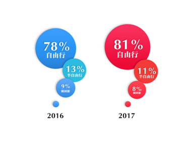 但是,旅行又絕不是什么“大事”,年輕旅行者對出境旅行絲毫“不緊張”,到達(dá)目的地后才在當(dāng)?shù)仡A(yù)訂游玩商品的越來越多,2017年占比已超過1/3。