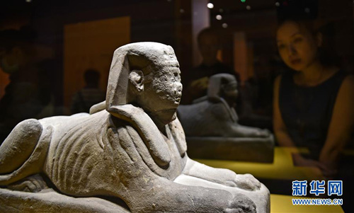 7月6日,觀眾在遼寧省博物館展廳參觀古埃及文物特展。