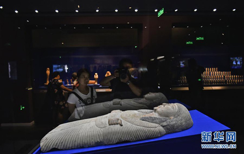 7月6日,觀眾在遼寧省博物館展廳參觀古埃及文物特展。