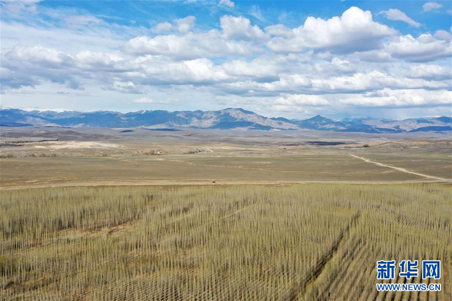 與阿勒泰市中水回用環(huán)境治理示范園林地一路之隔的就是戈壁灘(4月19日攝,無人機照片)。 近年來,新疆阿勒泰市利用經(jīng)污水處理廠處理達標后的中水,灌溉建在戈壁灘上的苗圃基地,形成良性循環(huán),助力綠化工程,改善生態(tài)環(huán)境。從2017年至今,阿勒泰市中水回用環(huán)境治理示范園已為當(dāng)?shù)鼐G化工程提供40萬株樹苗,實現(xiàn)5000畝荒山綠化。 新華社記者 丁磊 攝