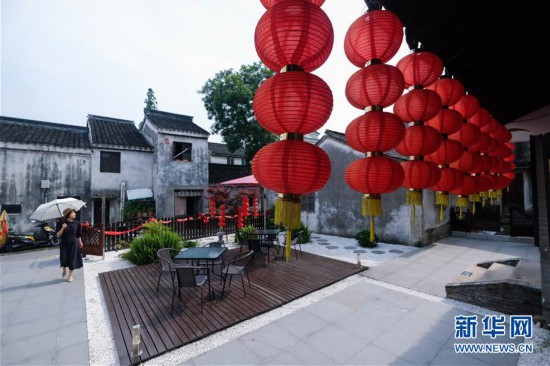 5月28日拍攝的湖州市織里鎮(zhèn)義皋古村“湖隱狀元及第”民宿。該民宿由舊民居改建而成,是一座以狀元文化為主題的民宿。 新華社記者 徐昱 攝