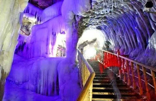 即使酷熱難當(dāng)?shù)氖⑾臅r(shí)節(jié)進(jìn)入洞中,依然是一派冰雕玉砌的嚴(yán)冬景象,和洞外的炎炎烈日、綠樹紅花構(gòu)成了兩個截然不同的世界。