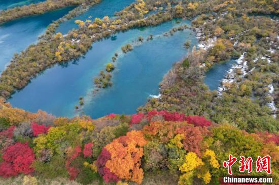 漫山紅葉與海子相映生輝。 張浪 攝