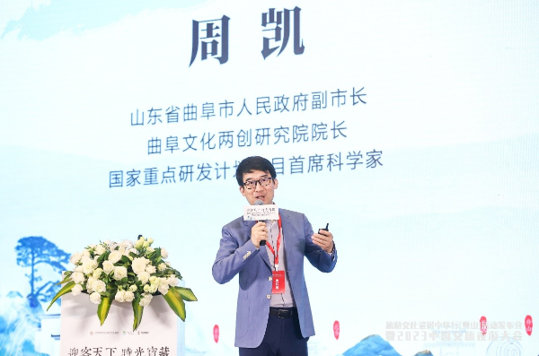 山東省曲阜市人民政府副市長周凱做主題演講 山東省曲阜市人民政府副市長周凱在演講中表示,我們的文明需要對(duì)話,中華大地上不同區(qū)域的各種文化,徽州文化、儒家文化,都是一個(gè)對(duì)話,要分享,在世界文明對(duì)話中分享中國的哲理智慧,發(fā)出中國聲音,講好中國故事,也是我們產(chǎn)業(yè)化發(fā)展的一個(gè)最關(guān)鍵的文化內(nèi)核。