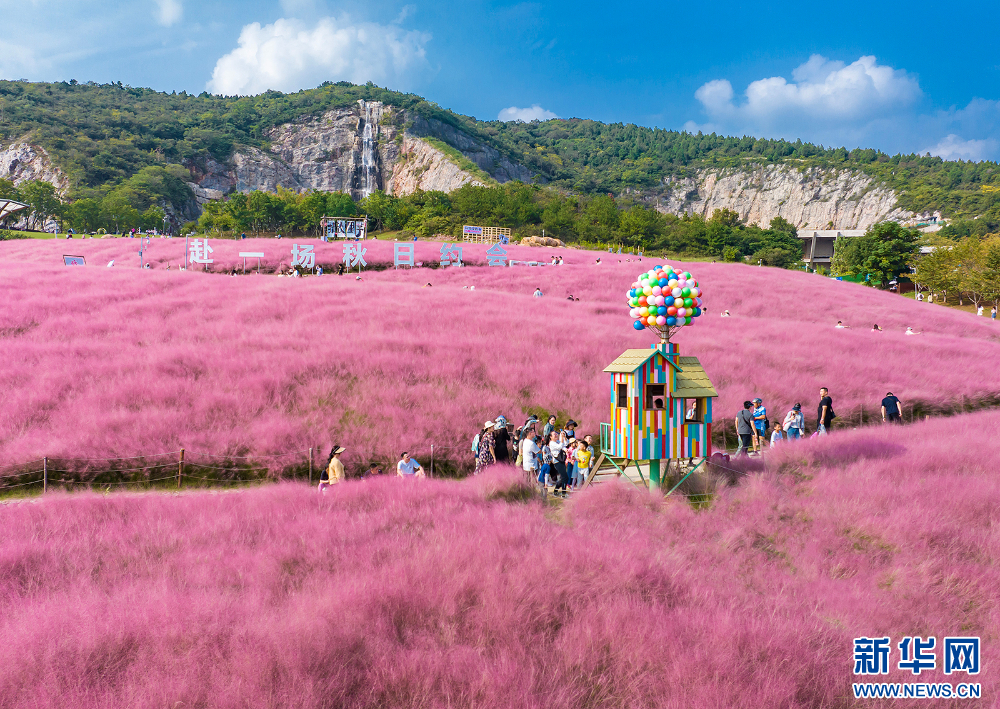 眼下,南京江寧湯山礦坑公園大片粉黛亂子草進入盛花期。一株株粉黛亂子草,聚成了粉色的“云?!?,粉色的花穗曼妙輕盈、如煙似霧,吸引不少市民前來觀賞,為濃濃秋意增添一份浪漫。(沙芳如 報道員:劉偉)