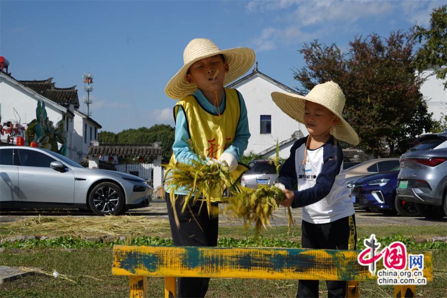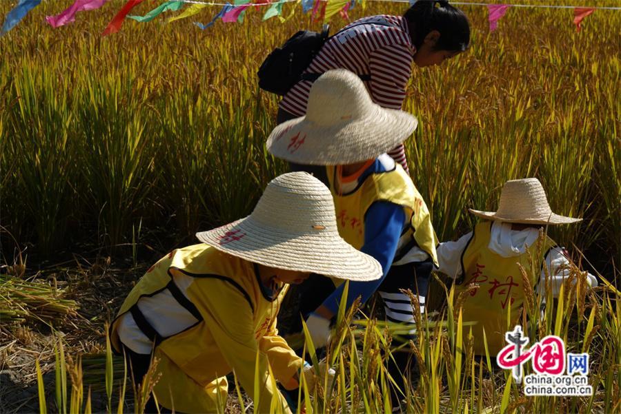 香村的管家將草帽與鐮刀發(fā)放給孩子們,再由經(jīng)驗頗豐的伯伯示范,再到實操,一場歡樂的割稻子活動在田間展開。參與勞作,真切體會那句“粒粒皆辛苦”,在割稻子現(xiàn)場,也能感受到大人們也躍躍欲試,“這邊,這樣割,不對,不對,哎呀……我來”略顯著急的“指揮”著孩子,或許,這樣的場景也帶給家長們重回童年無憂時光的快樂。