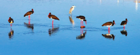 黑鸛在襄垣縣三漳濕地公園內(nèi)覓食。