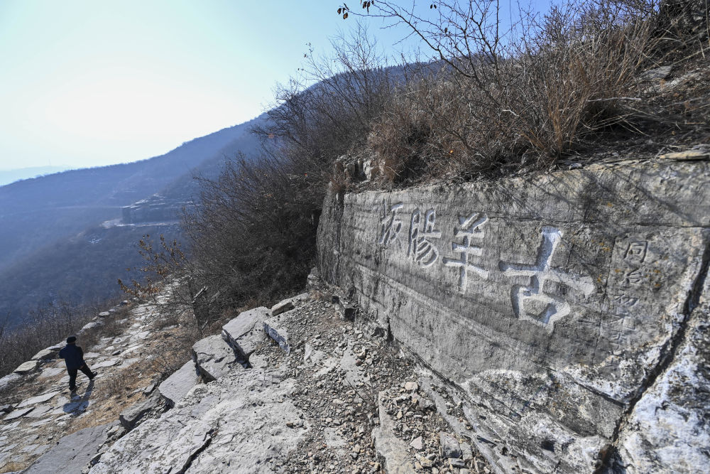 游客行走在位于山西省晉城市澤州縣的太行陘古羊腸坂。新華社記者 楊晨光 攝