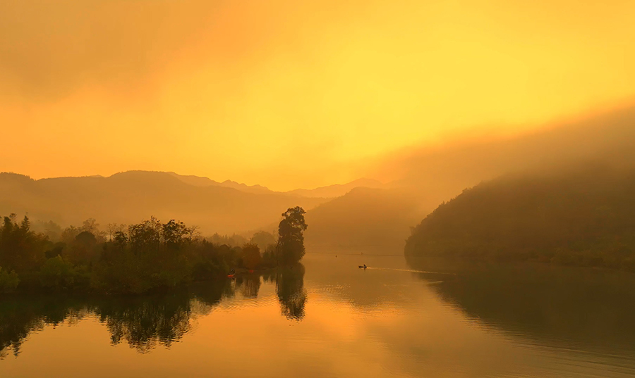 10月29日,在安徽省池州市的秋浦河畔,朝霞與水面相映成趣,泛舟秋浦河仿佛置身仙境。秋浦河是長江支流,風(fēng)光秀美,因唐代詩人李白的《秋浦歌十七首》等詩作而聞名。新華網(wǎng)發(fā)(王帆 攝)