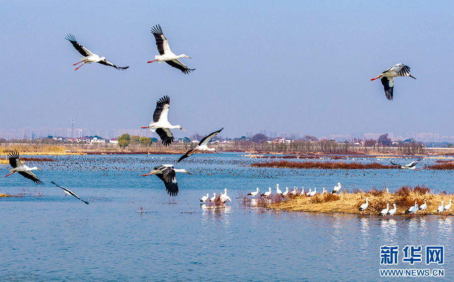 近年來(lái),廬江縣加大黃陂湖濕地保護(hù)力度,4萬(wàn)多畝的濕地環(huán)境得到較大改善。每年冬季,東方白鸛、白鶴等大量珍稀候鳥都按時(shí)來(lái)此過(guò)冬,萬(wàn)鳥齊飛的壯觀場(chǎng)面已經(jīng)成為廬江縣黃陂湖濕地最靚麗的風(fēng)景。新華網(wǎng)發(fā)(左學(xué)長(zhǎng) 攝)