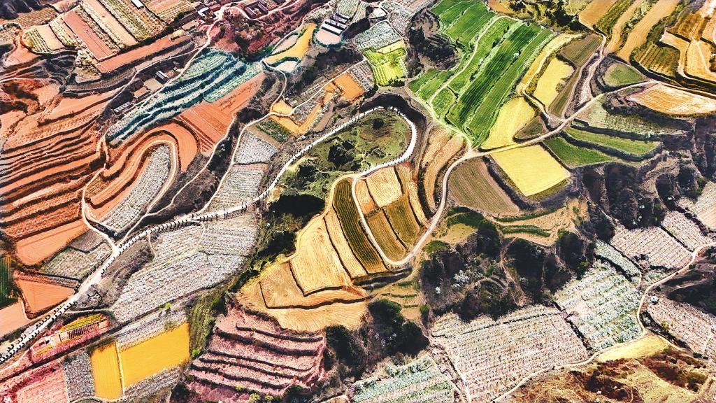 4月7日,在萬(wàn)榮縣萬(wàn)泉鄉(xiāng),成片的梯田層層疊疊、色彩斑斕,山鄉(xiāng)間呈現(xiàn)出一幅蜿蜒層疊的田園美景,宛如詩(shī)畫中的世界,美不勝收。
