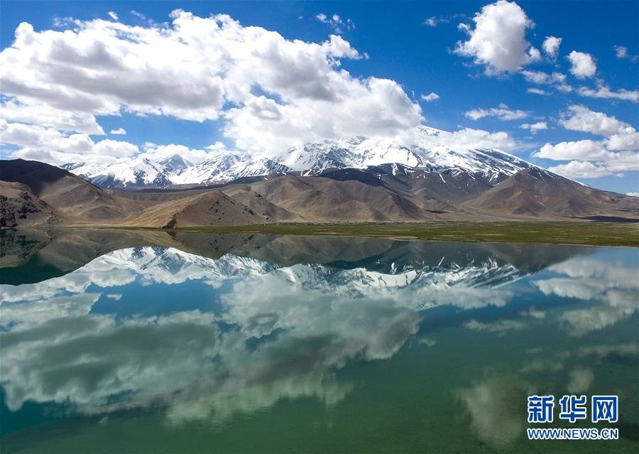 慕士塔格峰倒映在卡拉庫(kù)里湖里(6月7日攝)。6月的帕米爾高原風(fēng)光旖旎,吸引國(guó)內(nèi)外大量游客前來(lái)領(lǐng)略它的神韻。 新華社記者 趙戈 攝