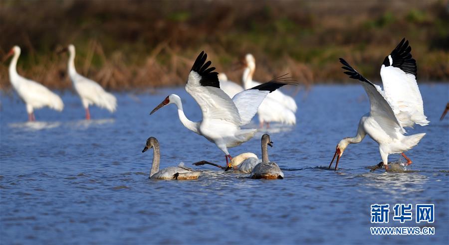 受新一輪北方冷空氣南下影響,江西鄱陽湖越冬候鳥數(shù)量激增,一年中最佳的觀鳥時(shí)節(jié)到來。江西鄱陽湖國(guó)家級(jí)自然保護(hù)區(qū)管理局近日監(jiān)測(cè)顯示,飛抵保護(hù)區(qū)的候鳥總數(shù)達(dá)到16萬只,主要包括大雁、小天鵝、白鶴、東方白鸛等。