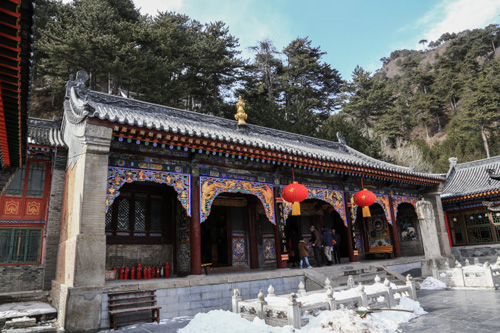 現(xiàn)僅存有四座大殿,分別是天王殿、大雄寶殿、觀音殿和關(guān)公殿,其中觀音殿又稱文殊殿,殿內(nèi)供奉有五尊菩薩,兩側(cè)是十八羅漢。寺后有一座小院,院內(nèi)有乾隆五十一年建造的十五世章嘉活佛墓塔。墓塔八面雕有精細(xì)的人物圖案。章嘉活佛是黃教中一個(gè)歷代沿襲的職位,其地位僅次于達(dá)賴、班禪活佛??滴趸实圩鹫录位罘馂椤按髧鴰煛?,讓其統(tǒng)管內(nèi)蒙五十旗。第十九世章嘉活佛、即末世活佛被袁世凱委任為北京、西寧、五臺山黃教的首領(lǐng),后來還擔(dān)任了國大代表。這個(gè)末世活佛在五臺山擁有極大權(quán)力,因鎮(zhèn)海寺是他的行署,所以鎮(zhèn)海寺的規(guī)模也日漸龐大。