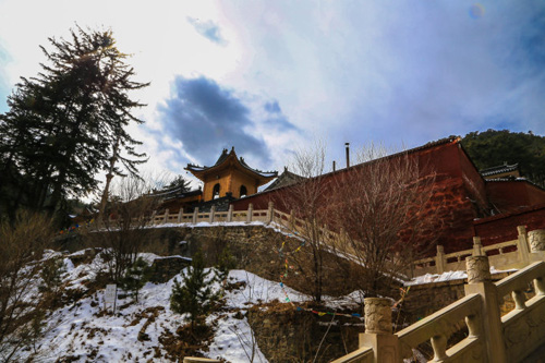 鎮(zhèn)海寺位于山西省忻州市五臺縣臺懷鎮(zhèn)南清水河西側(cè),距臺懷鎮(zhèn)5公里。坐落在“二龍戲珠”的風(fēng)水寶地,左右兩側(cè)環(huán)繞的山峰,猶如兩條飛龍落下河谷,拱背彎腰,騰挪圍抱;寺院建筑在兩山合抱的一個(gè)石山嘴上,宛若一顆二龍嬉戲的寶珠。山豁口有蒼老挺拔的大松樹,走在松樹林間的蹊徑,再聽颯颯的松風(fēng),給人一促靜寞幽深的感覺。入寺四望,南側(cè)的山峰,長滿密密麻麻的杉樹和楊樹,北側(cè)的山巔上,千年古松出于(山免)巖石之中。這里是五臺山的一處風(fēng)景區(qū),濃蔭蒼翠的古松掩映山寺,在五臺寺廟區(qū)還是少見的。