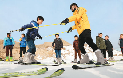 圖為在甘肅省山丹縣佛山滑雪場(chǎng),近百名中小學(xué)生正在滑雪教練的指導(dǎo)下體驗(yàn)冰雪運(yùn)動(dòng)樂(lè)趣。張 淵 攝(人民視覺(jué))
