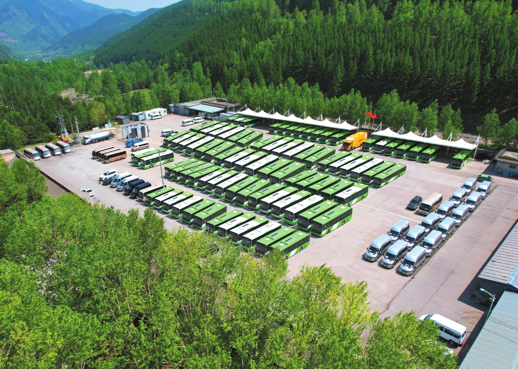 在晉旅運(yùn)通的業(yè)務(wù)版圖上,同樣亮眼的還有綠色低碳的底色。140輛新能源公交車(chē)與近百輛燃油巴士共同編織起17條公交線路覆蓋核心景點(diǎn)與村鎮(zhèn)。300輛專(zhuān)業(yè)朝臺(tái)車(chē),是叩拜五方文殊的信眾與向往臺(tái)頂風(fēng)光的游客最堅(jiān)實(shí)的依靠。50輛新能源出租車(chē),則如細(xì)密的觸角深入護(hù)銀溝、普安寺等偏僻村落與寺院,解決了當(dāng)?shù)鼐用?、僧尼及游客“最后一公里”的出行難題。其綠色足跡,無(wú)聲守護(hù)著山林的清靜。同時(shí),晉旅運(yùn)通從票務(wù)代理(航空、鐵路、景區(qū)門(mén)票、酒店預(yù)訂)到94輛公務(wù)租賃車(chē)輛,再到33輛旅游包車(chē)提供團(tuán)隊(duì)出行及接送站服務(wù),構(gòu)建了覆蓋全域、貫穿旅程始終的立體交通服務(wù)生態(tài)。