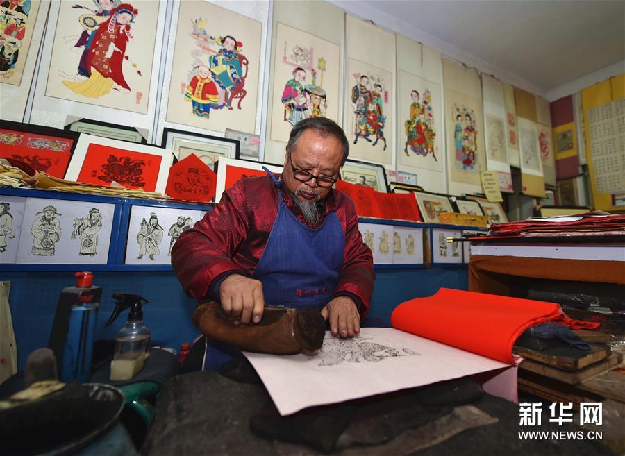春節(jié)期間,山西省新絳縣的絳州木版年畫傳承人吳百鎖忙得不可開交,來購買“吉祥如意”“雄雞一唱天下白”等主題年畫的顧客絡(luò)繹不絕。山西省非物質(zhì)文化遺產(chǎn)絳州木版年畫發(fā)端于宋金,興盛于明清,從選料到雕刻再到上色都非常講究,一幅年畫的制作需要七八道精細工序。隨著時代的變遷,目前已鮮有專職雕刻、印制年畫的匠人。擁有嫻熟雕刻技藝的吳百鎖在傳承傳統(tǒng)工藝的基礎(chǔ)上,積極創(chuàng)作現(xiàn)代題材的作品,希望通過自己的創(chuàng)新讓更多少年兒童了解并愛上木版年畫,讓這門幾乎失傳的技藝綻放新的光彩。新華社記者 曹陽 攝