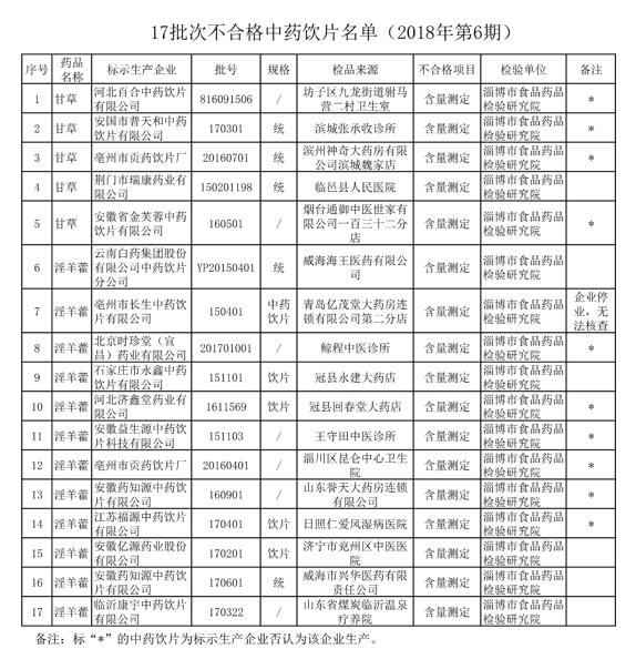 人民網(wǎng)北京5月29日電 (董童)28日,山東省藥監(jiān)局發(fā)布《關(guān)于17批次中藥飲片質(zhì)量抽檢不合格的通告(2018年第6期)》(以下簡稱《通告》)。經(jīng)淄博市食品藥品檢驗(yàn)研究院檢驗(yàn),標(biāo)示為云南白藥集團(tuán)股份有限公司中藥飲片分公司等15家企業(yè)生產(chǎn)的17批次中藥飲片,經(jīng)抽檢質(zhì)量不符合標(biāo)準(zhǔn)規(guī)定。